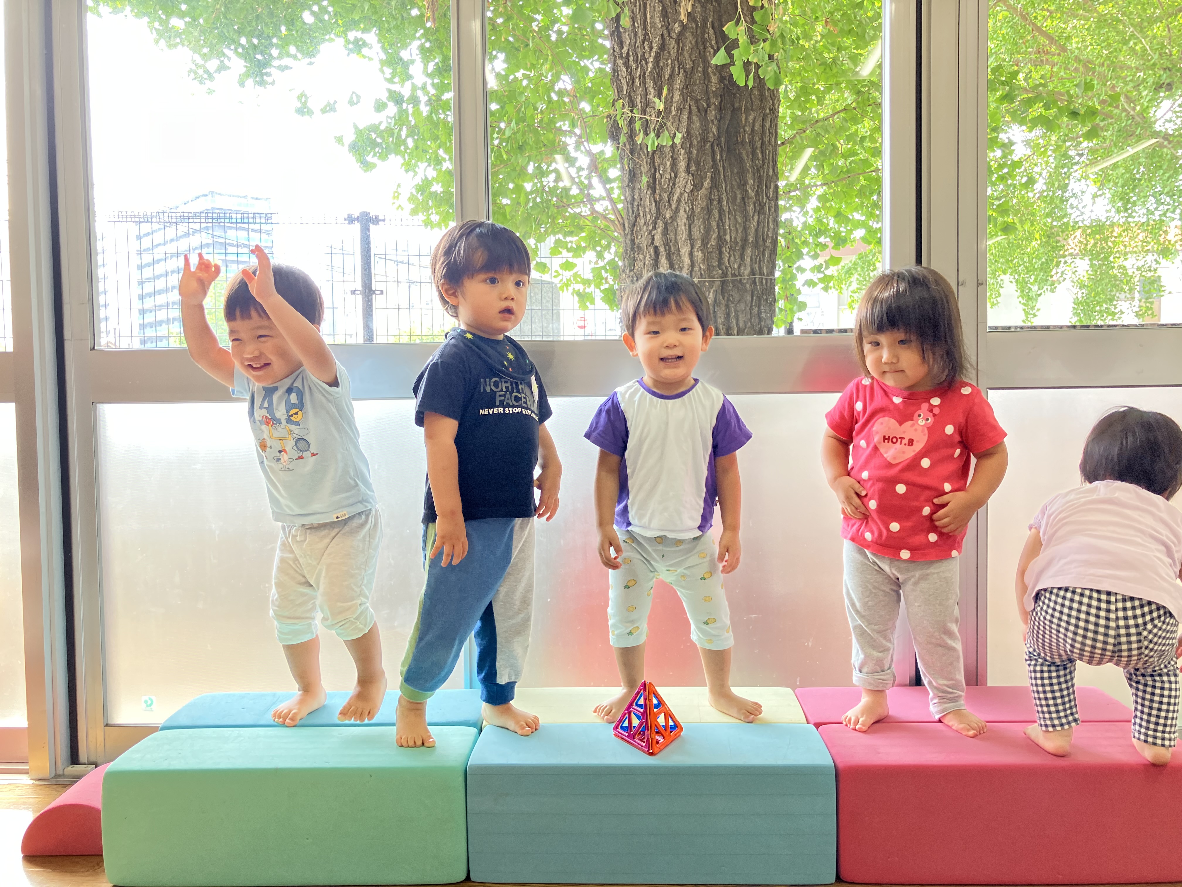 乳児クラスさんは、大好きなお父さん、お母さんと一緒に楽しく参加できました。幼児クラスさんは、3歳は鉄棒やマット運動、4歳はパラバルーン、5歳はダンス、組体操を行いました。一人ひとり頑張った姿を発表する事ができました。親子競技や保育士も参加したリレーなど大人も盛り上がった運動会でした。